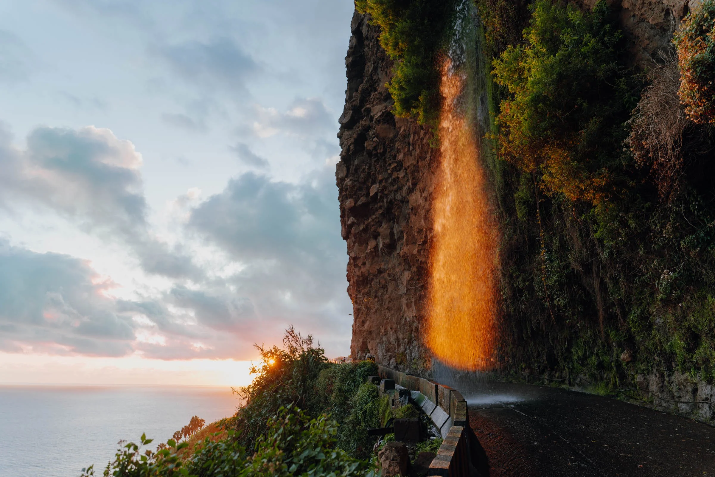 Cascata da Ribeira da Pedra Branca is on Madeira’s north coast, and it feels like a total secret. It’s less visited than the island’s other waterfalls. You’ll have to turn off on to the old highway to see it (a drone captures the best view).