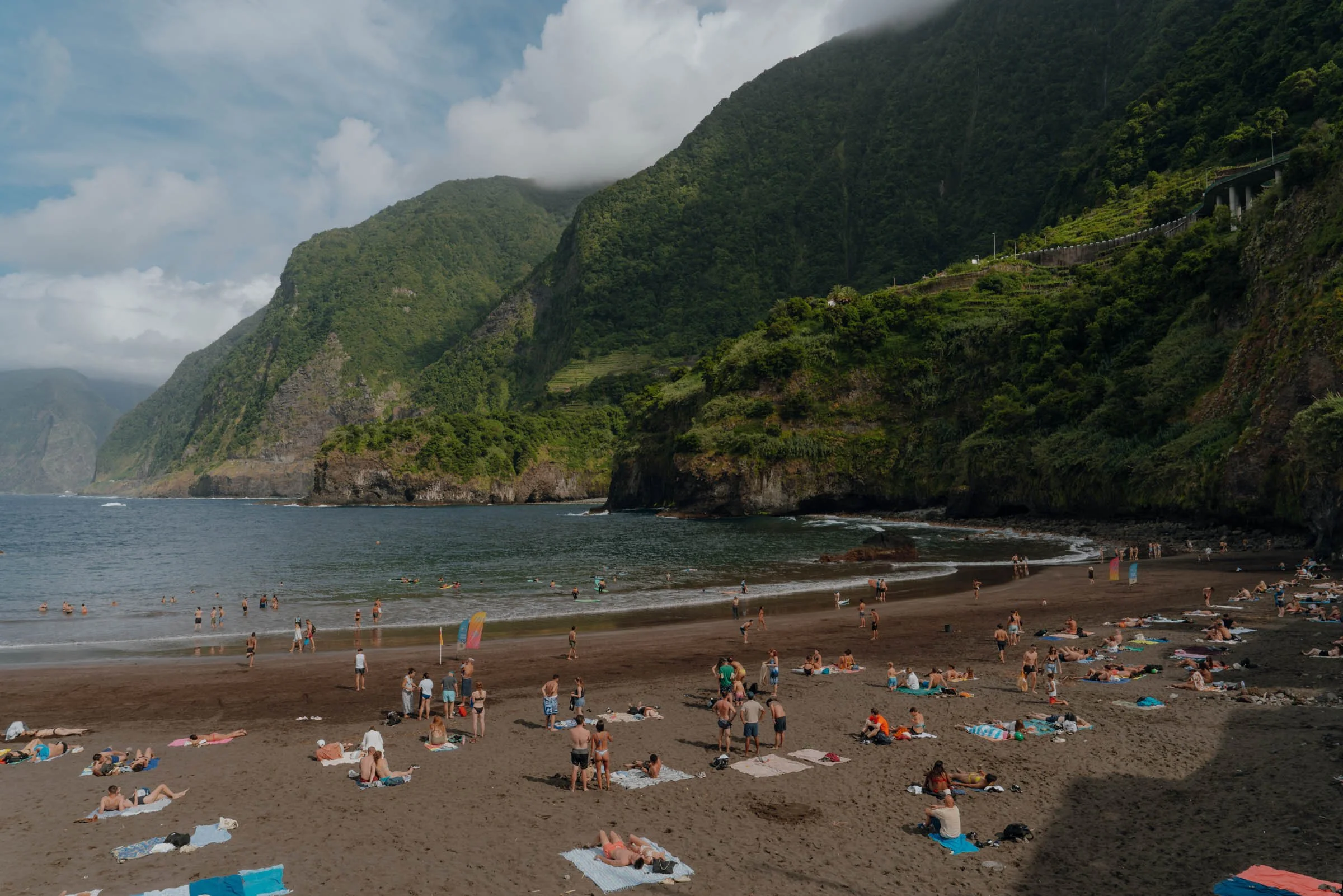 Volcanic black sand, lush green cliffs, and mellow waves, Seixal’s Black Beach is a gorgeous stop. It’s rare to find a true sand beach in Madeira, and this one is perfect for both relaxing and playing in the water. The mild waves make it a great place for first-time surfers, and you can rent boards or book a lesson right on the beach. Bring a towel and stay a while cuz the contrast of dark sand, turquoise water, and towering cliffs makes this place insanely photogenic, especially at sunrise when the light hits the bay just right.